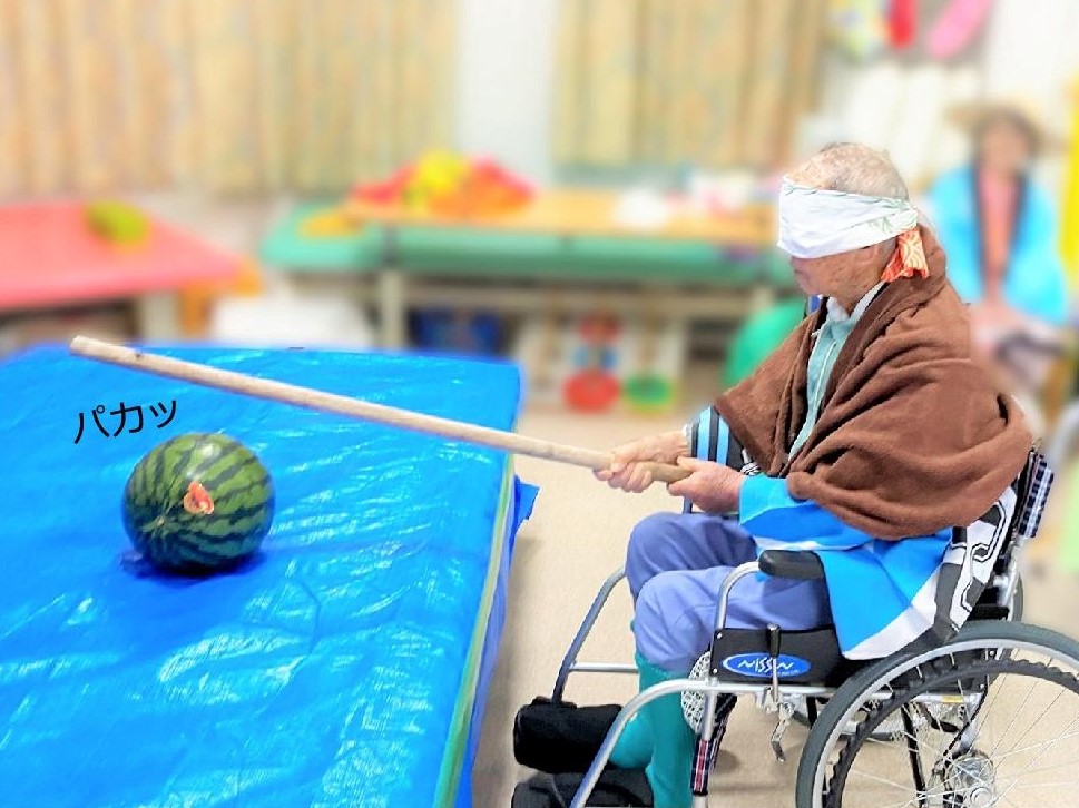 目隠しをされた患者さまが、スイカ割りに挑戦です。