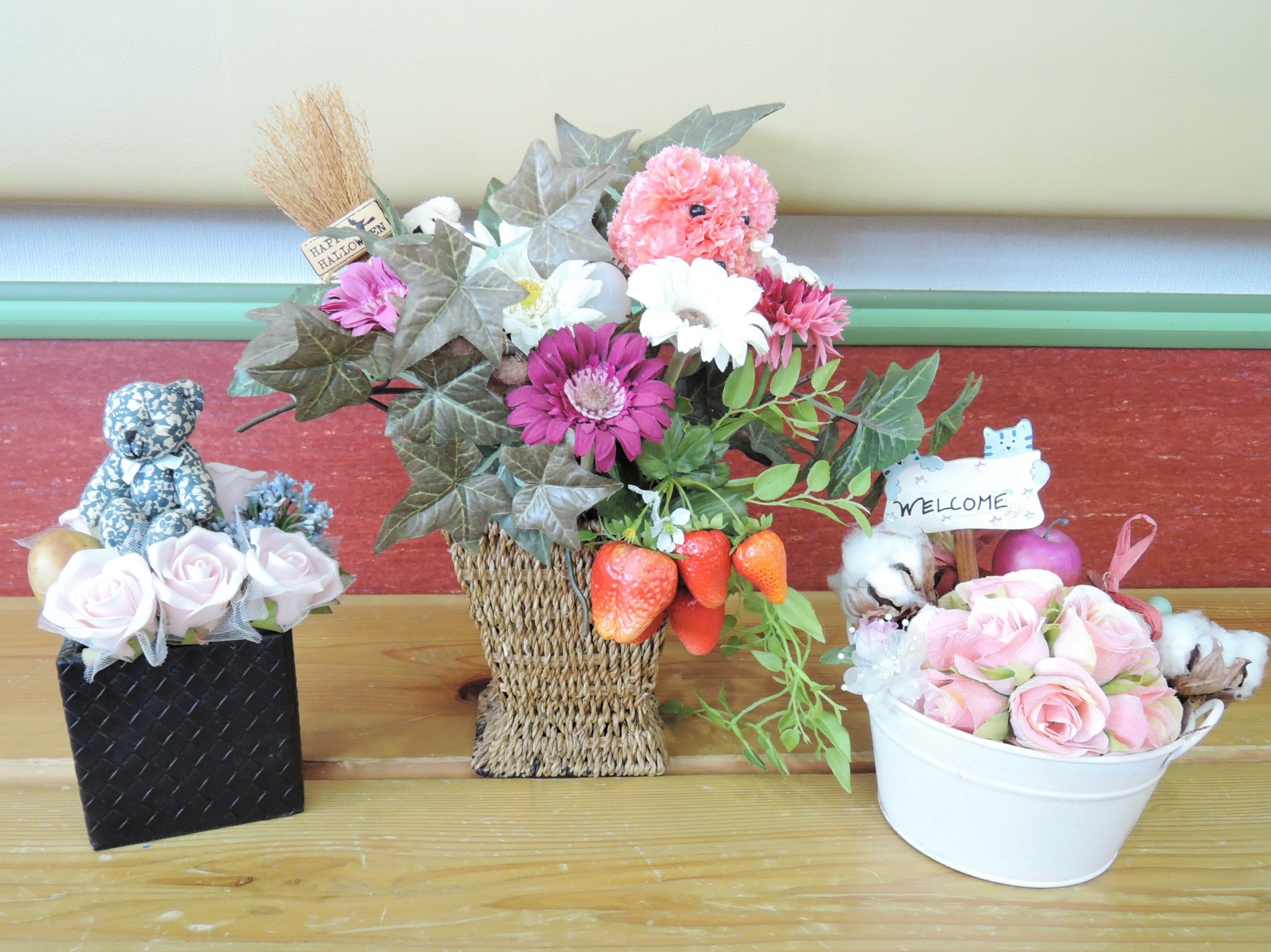 テーブルに飾られたフラワーアレンジメントは、