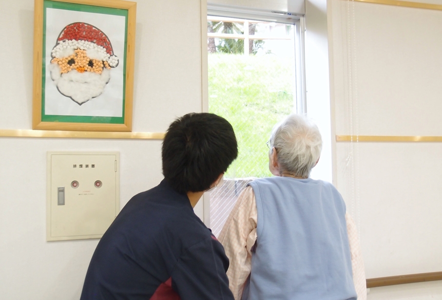 いま、サザンカの花が見頃でリハビリ室にお越しになった患者さまと一緒に窓からよく眺めています。花や草木、空を見ようとすると自然と体が動きますが、その動作は実はリハビリの観点でも大切なものなのです。「花を見たい」「遠くの景色を見たい」と思う気持ちが、「立ち上がったり」「顔を上げたり」「背筋を伸ばしたり」という動作につながり、訓練になるわけです。季節の移り変わりを感じることができるので、いい気分転換にもなります。