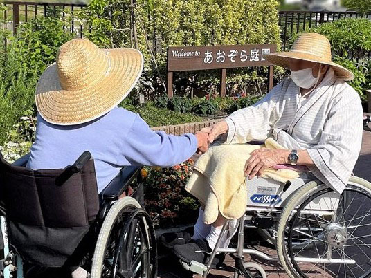 HOMEお知らせ本日「りんご便り6月号」を発送いたします。 本日「りんご便り6月号」を発送いたします。 当院では患者さまのご家族さまや地域の皆様と病院をつなぐ大切なコミュニケーションツールとして広報誌「りんご便り」を毎月発行しております。 本日、ご家族さまに最新号をお送りいたしました。 こちらは6月号の表紙の写真です。 この日、患者さま方はあおぞら庭園(屋上庭園)で久しぶりに再会されました。 庭園に咲いている花の話で盛り上がっておられました。