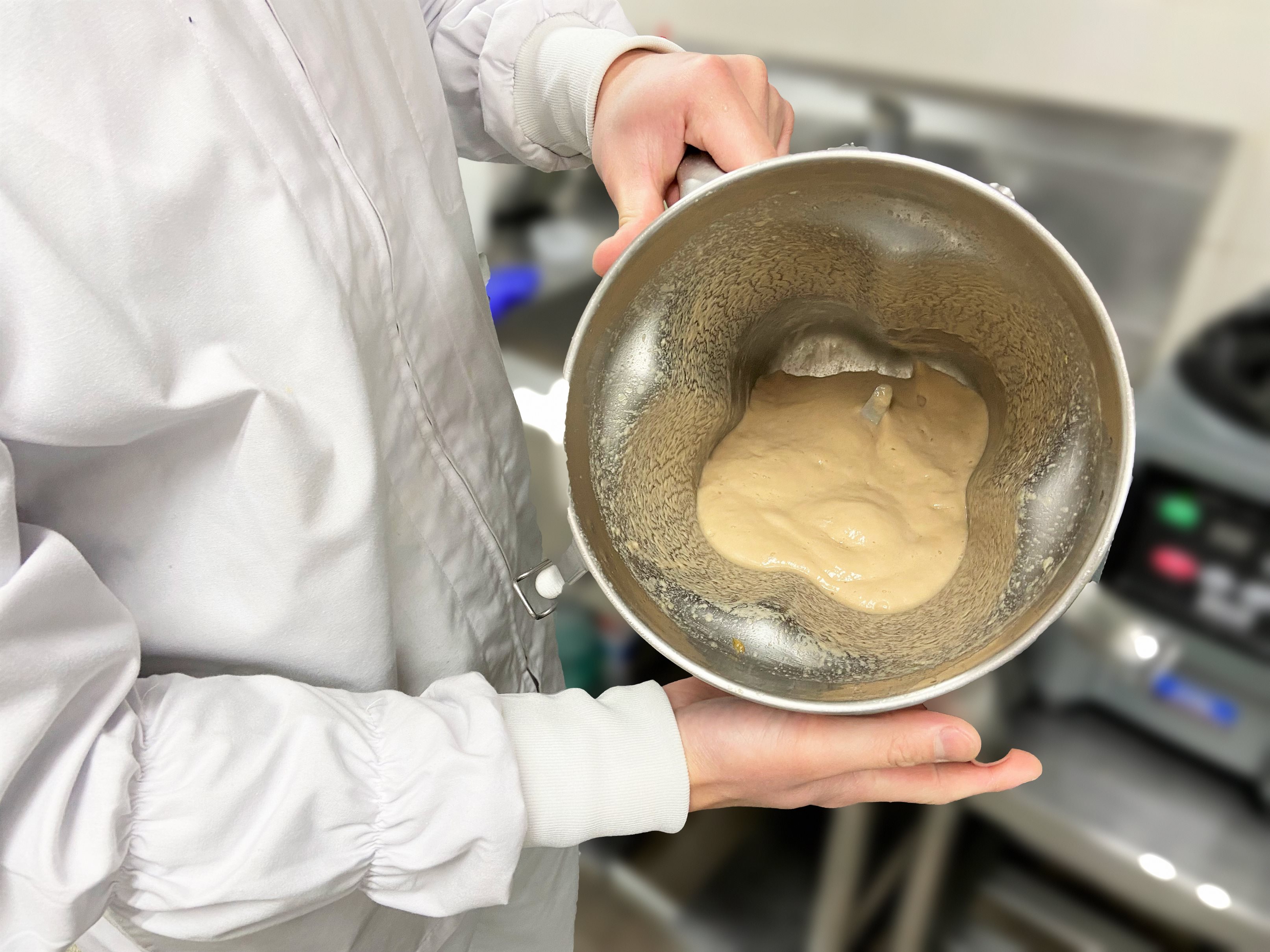 途中で出汁ととろみ剤を加え、再度ミキサーにかけてペースト状にします。見た目はペースト状ですが、コクのある煮魚のようなお味です。