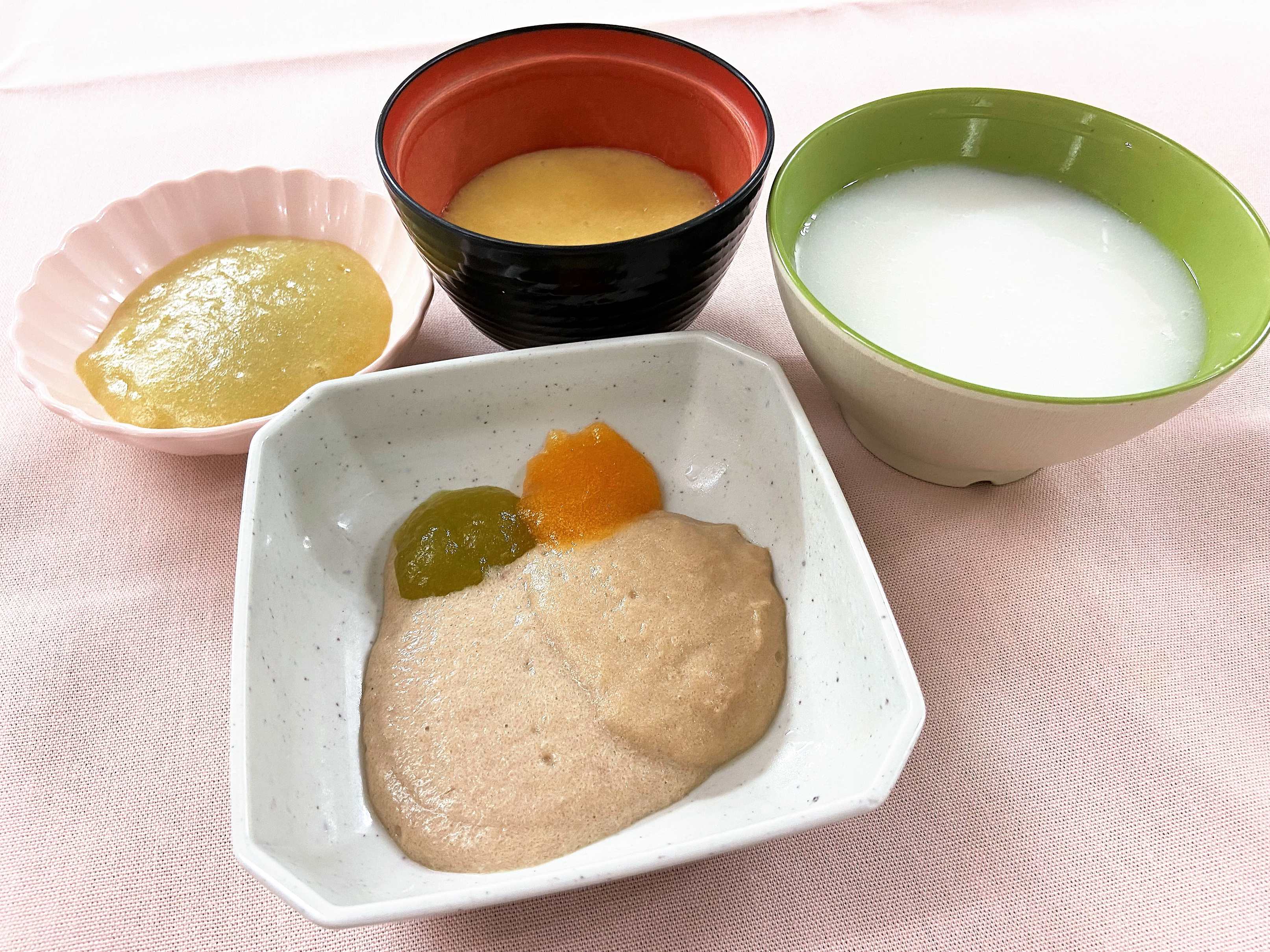 ミキサー食とは、噛まずにお召し上がりいただけるようペースト状にしたお食事の形態のことです。