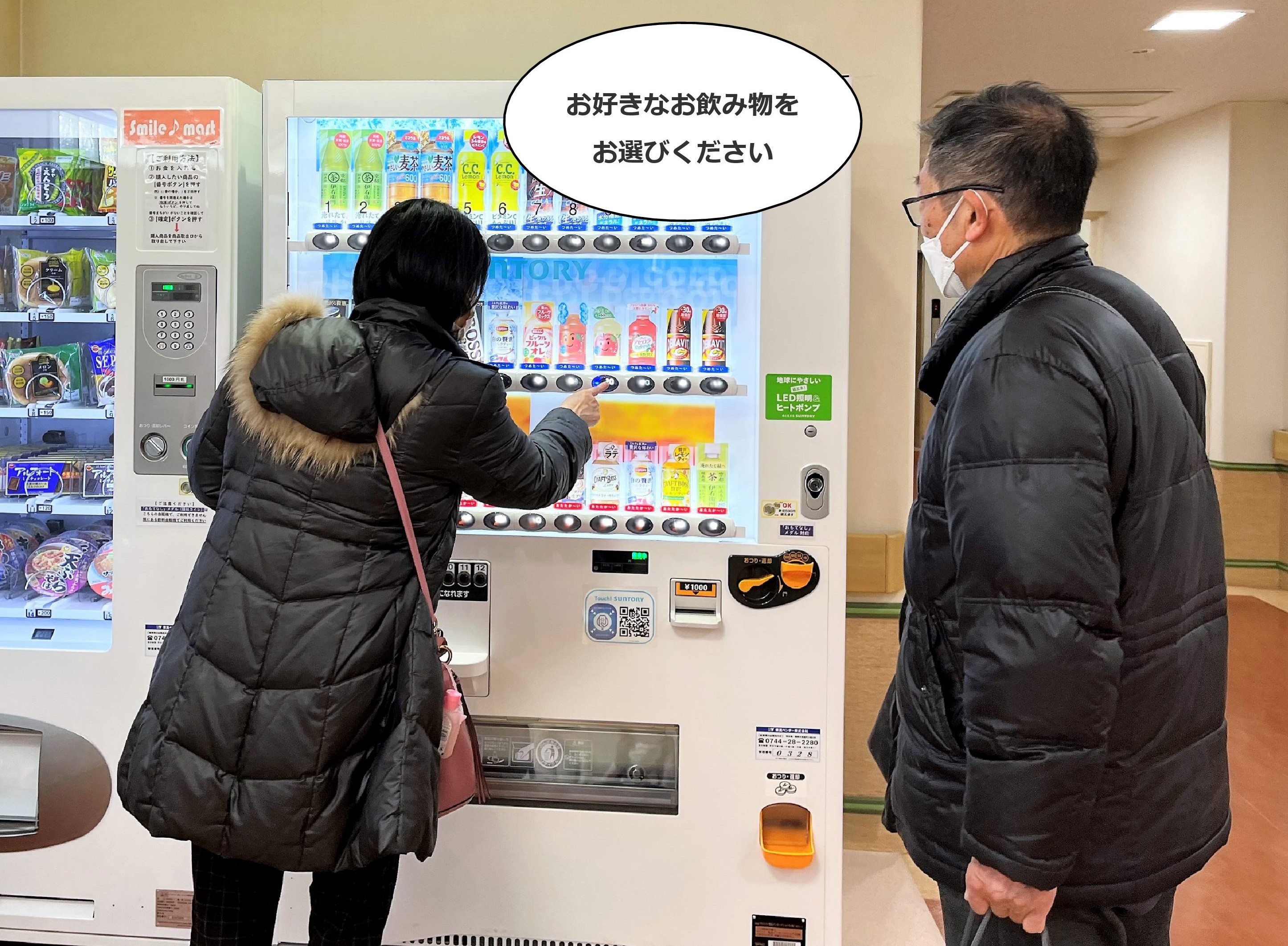 「ドリンク引換券」をお持ちのご家族さまは、ご来院の際受付で「おもてなしメダル」とお引き換えの上、自動販売機でお好きなお飲み物をお選びくださいませ。